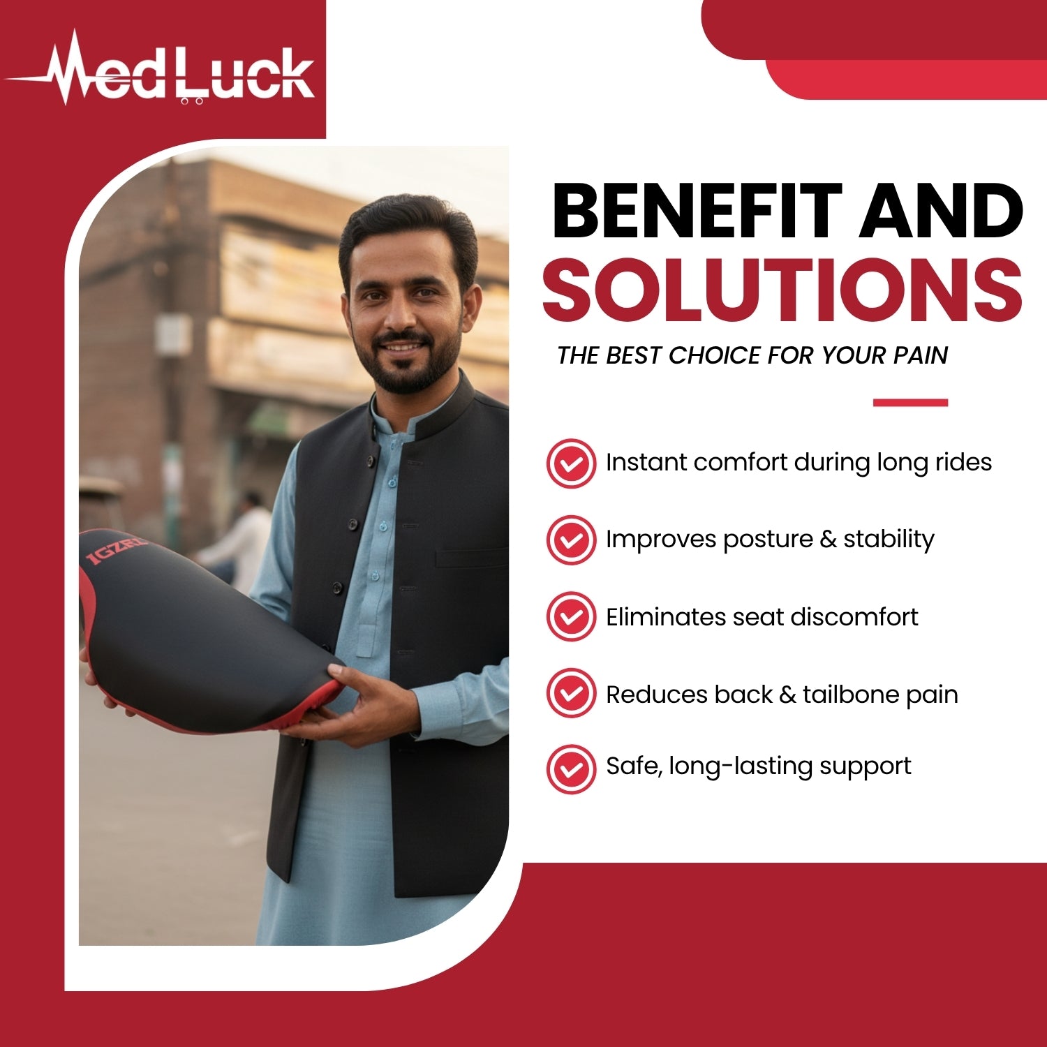 Ergonomic Design: Promotes proper posture, reducing strain on the back and hips.