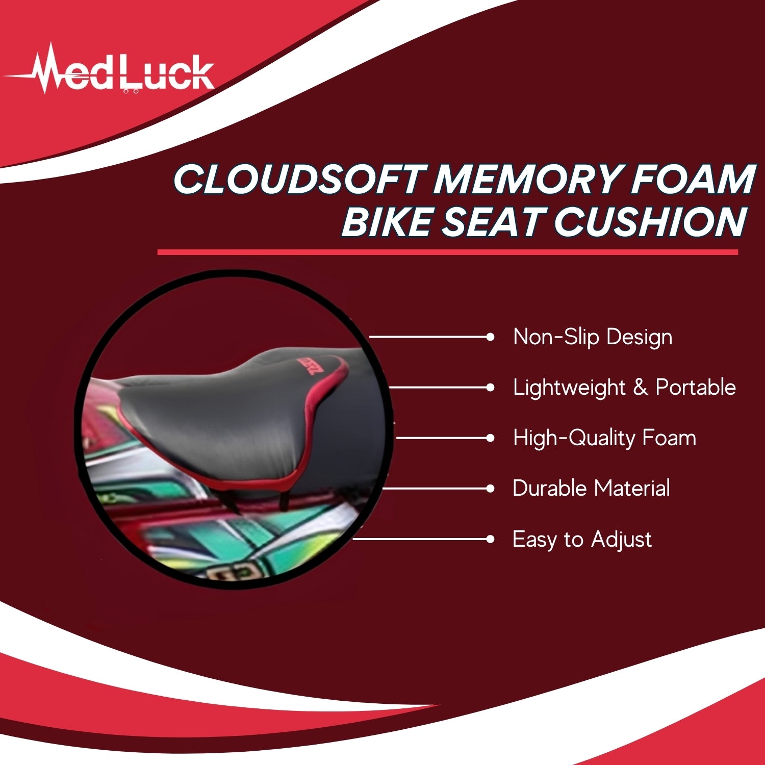 CloudSoft Memory Foam Bike Seat Cushion - Pain Relief & Enhanced Comfort
